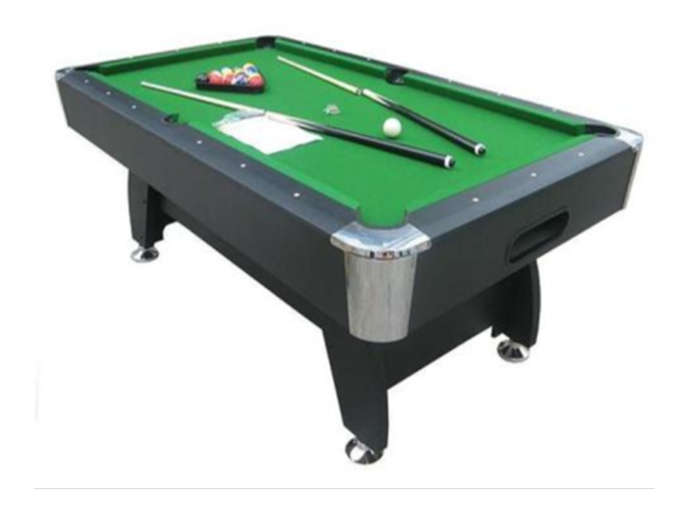 - Distinctive arcade-style designed 8-foot billiard table with distinguished electric-blue/green playing surface