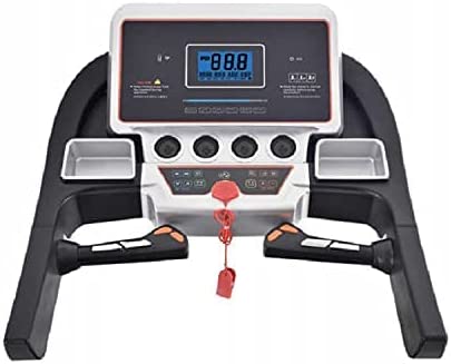 - Maintain a toned body while working out at home with the Fitness Treadmill. This treadmill features an LED screen that displays your speed, distance, time, pulse, and calories. It has an AUX slot and a speaker that you can use to play music on while exercising. The treadmill contains shock absorbers that help you maintain stability. It is equipped with a special program, which saves the distance traveled for easy tracking.