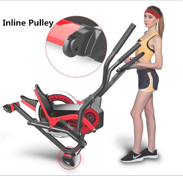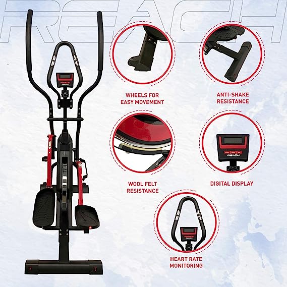 - FEATURES: Flywheel weight of 8kgs, 8 levels of Wool Felt Resistance, Space saving design, 2-in-1 motion of climber and cross trainer, patented curve-crank technology, transport rollers for portability, LCD screen. Heart Rate Monitoring, Supports weight of 100kgs.