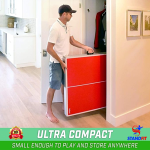 Easily folds out for play and folds up for storage in seconds and is easily carried by one person using the built-in carrying handles – perfect for games in apartments, corridors, fields and offices; and for anyone who doesn’t want to deal with a full size table.