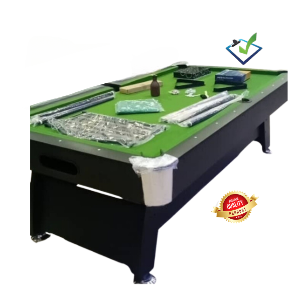 Get sporty with this 8 x 4 foot snooker pool table. It is well designed and comes with accessories, such as cue sticks, balls, chalk, triangle, brush. It comes with a blue felt and polished wood body made in Germany
