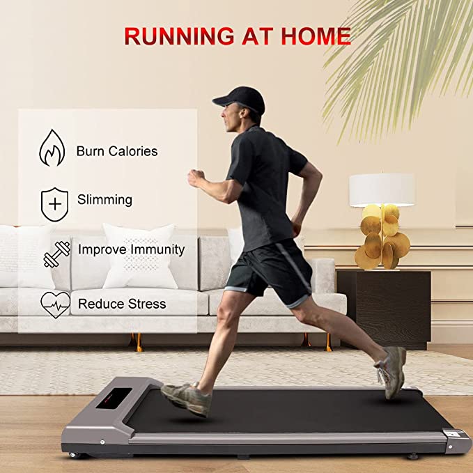 • NO INSTALLATION — No need to install, just take it out and use it. The dimension of the electric treadmill is 47 inch x 20 inch x 5.5 inch. With transport wheels we can easy move and store it under a sofa, bed or behind a door, which greatly free up some floor space.